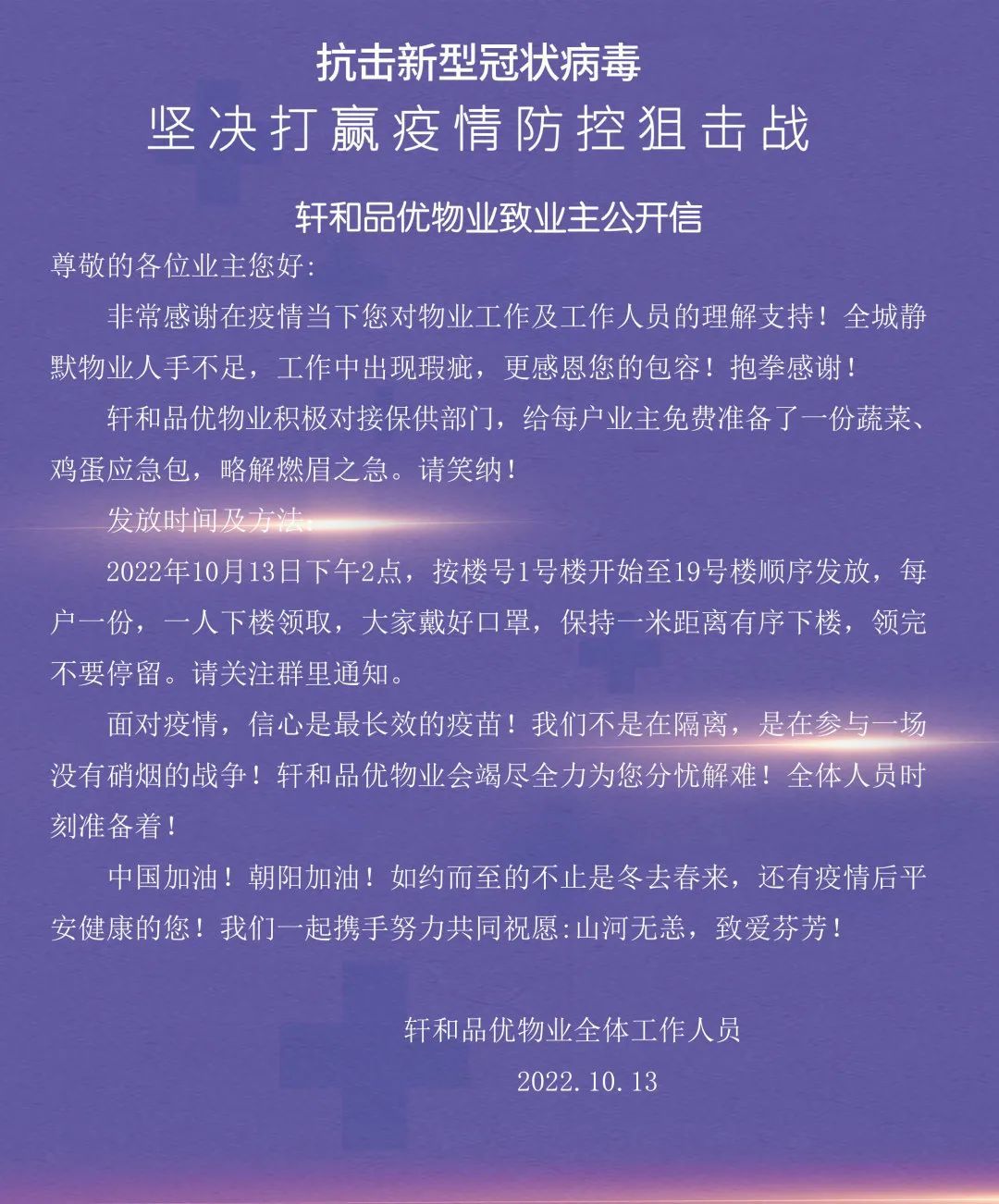 軒和·品優(yōu)物業(yè)為業(yè)主免費(fèi)發(fā)放應(yīng)急蔬菜包