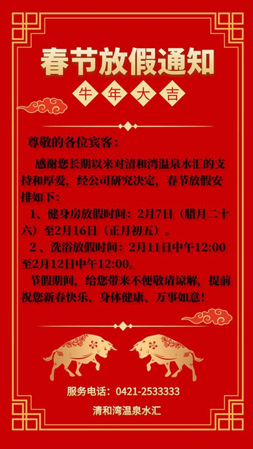 清和灣溫泉水匯春節(jié)放假通知